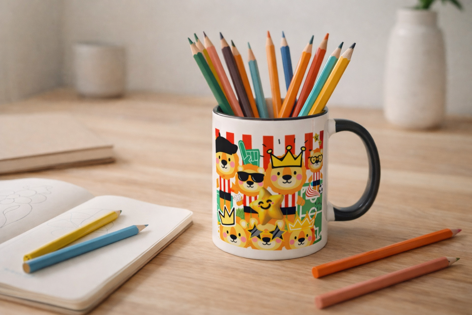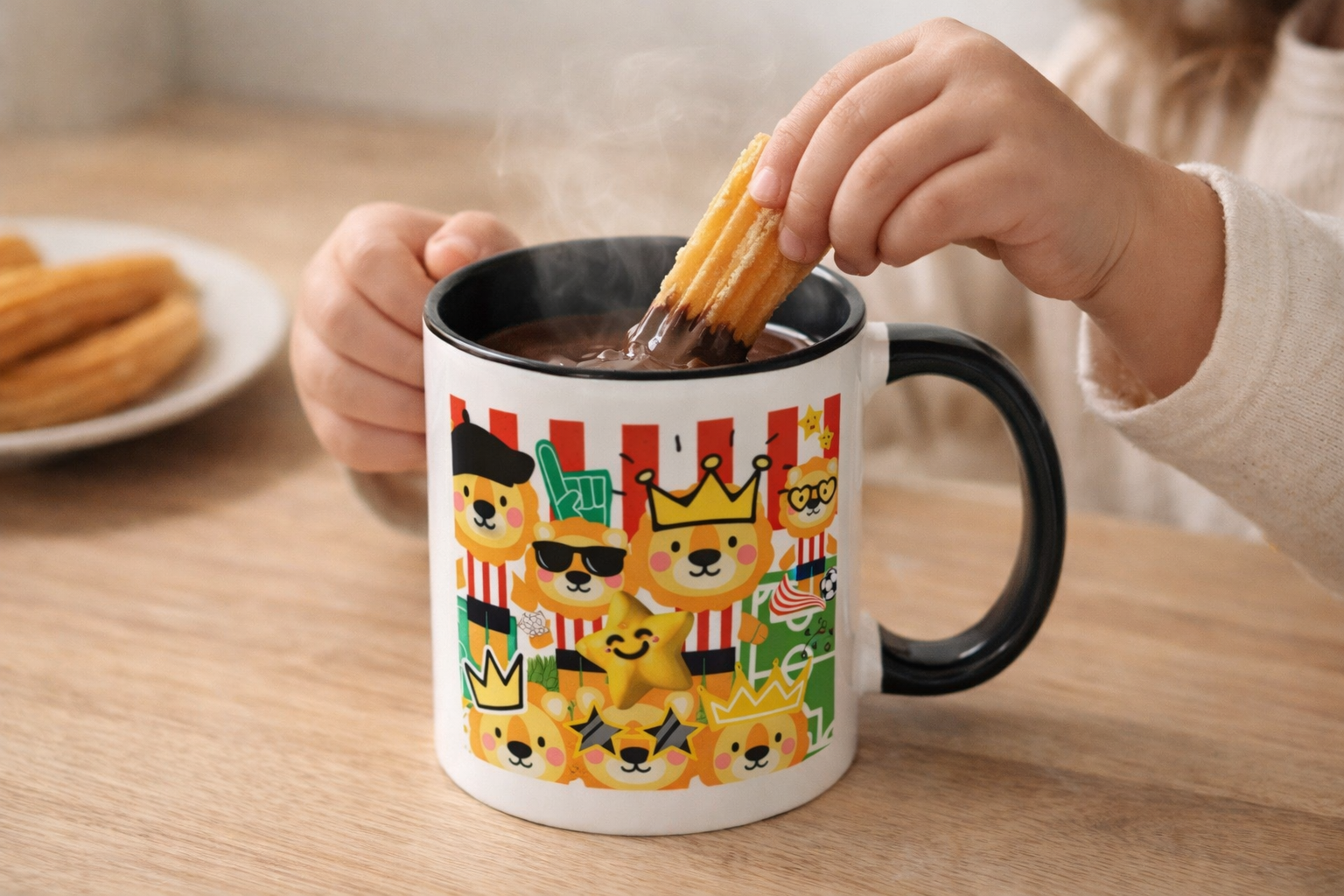 Tazón Leones Hinchas - Afición Rojiblanca Athletic de Bilbao. Porcelana blanca con interior y asa en color negro